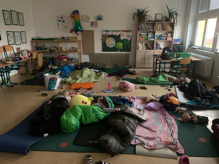V pátek 27.3. 2026 jsme se připojili k Noci s Andersenem, která se koná každý rok nejen v ČR. Letos ve škole přespalo 57 dětí z 1.stupně. Aby se ale dostaly ke svým pelíškům, musely napřed vyřešit 10 úkolů a "uniknout ze středověkého hradu", což se nakonec všem podařilo. K připomínce nedožitých 100.narozenin Miloše Macourka jsme si v tělocvičně promítli film "Šest medvědů s Cibulkou".